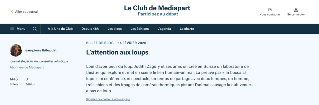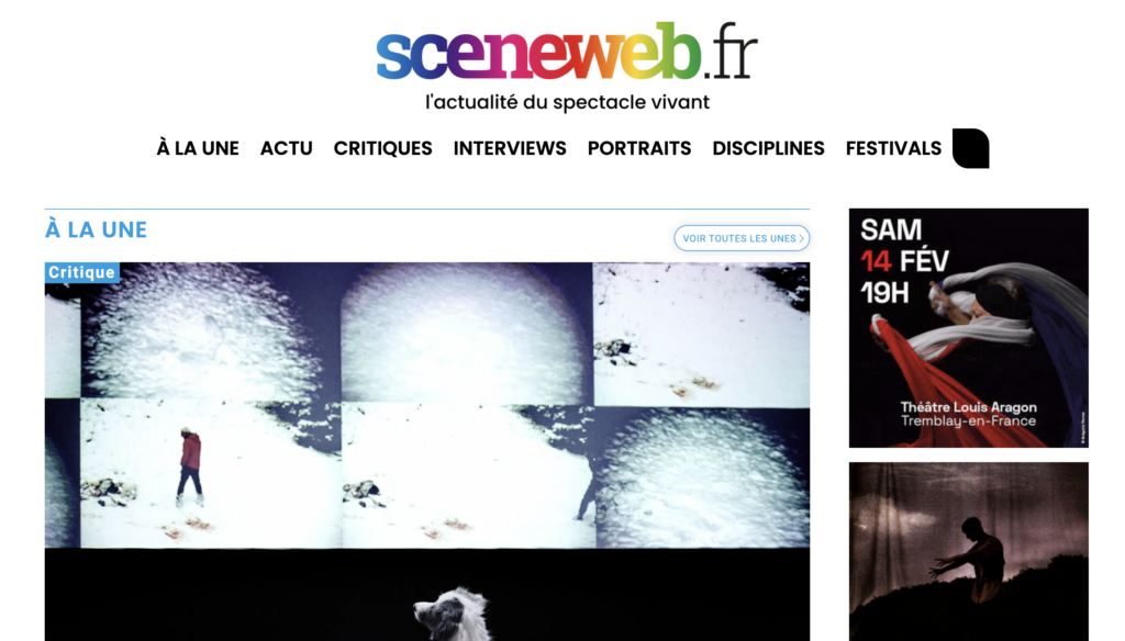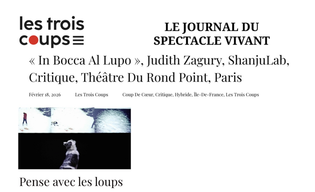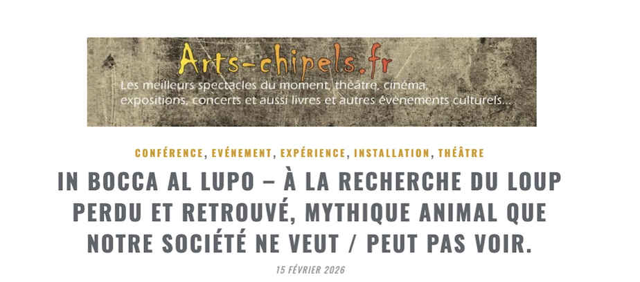 Les Trois Coups, 18 février 2026Pleins Feux, 17 février 2026Arts-chipels.fr, 15 février 2026Blog de Jean-Pierre Thibaudat – Mediapart, 14 février 2026Journal télévisé – Arte, 14 février 2026 (à partir de 16 min 55)28 minutes – Arte, 14 février 2026 (à partir de 33 min 11)L’Avant-scène – France Culture, 14 février 2026sceneweb.fr, 13 février 2026France inter – Un bol de nature, 8 février 2026France inter – CO2 mon amour, 8 février 2026Le Monde, 10 janvier 2026France 3, 22 décembre 2025Libération, 24-25 décembre 2025Programme.ch, 19 décembre 2025